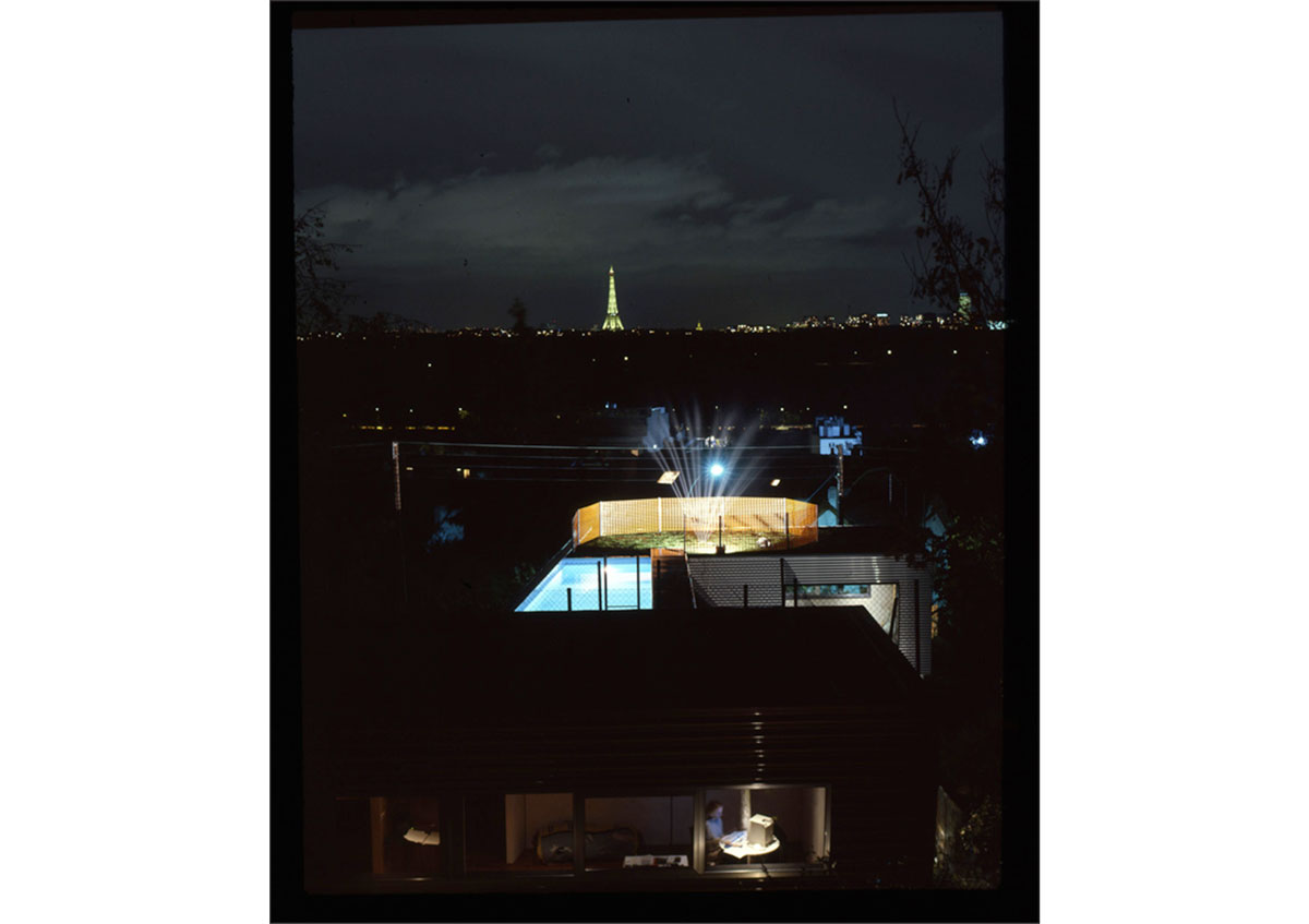 - ‘I could have been exasperated by the fact that the house is perfectly aligned with the Eiffel Tower, but it is also a unique opportunity to be in an intimate situation, swimming almost naked, and at the same time being confronted with the scale of a big city, the symbol of the metropolis. A moving situation. I have done everything to ensure that this moment does not become the apotheosis of home. The house is not a corridor leading to this sublime moment’, Koolhaas explains (Copans 1995). [^]