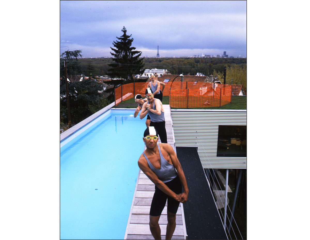 Another aspect of the film that no doubt bothered Koolhaas was the fact that the most important scenes — the physical exercise session of the lifeguards and the clash between the mobsters — were staged on the roof of the villa against the backdrop of the Eiffel Tower, undermining Koolhaas’s vision for the design of the villa. Although the view of the tower that the villa’s roof offered could be seen as defining the building, Koolhaas saw the roof as a way to construct a moment of intimacy in which the inhabitants could swim naked without being overwhelmed by the scale of the metropolitan (Figure 17).44 The collision of heterogeneous characters and scenes on the roof conveys the image of a villa pervaded by dissonance, conflict, and tensions, but in his work, Koolhaas sought to avoid tensions “to be too apparent in the end.” He wanted them to be as “subdued and sublimated” as possible, as he “attempted to do … in the Dall’Ava house in Saint-Cloud’ (Chaslin and Koolhaas 1992, 163).
