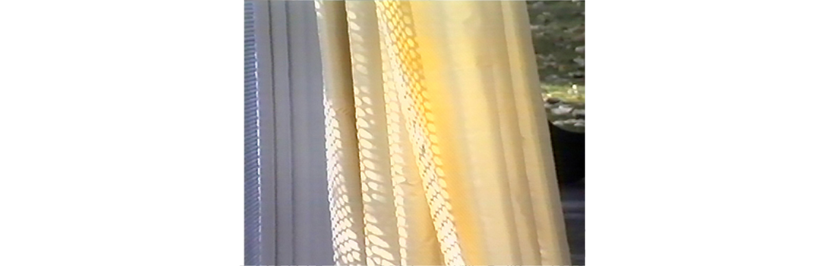 Yellow curtain with brise-soleil shadows ondulating in the living room. Still frame from Hans Werlemann and Claudi Cornaz, 2042: The Villa Dall’Ava, 1992. Claudi Cornaz Archives, Rotterdam. © Hans Werlemann, © Claudi Cornaz.